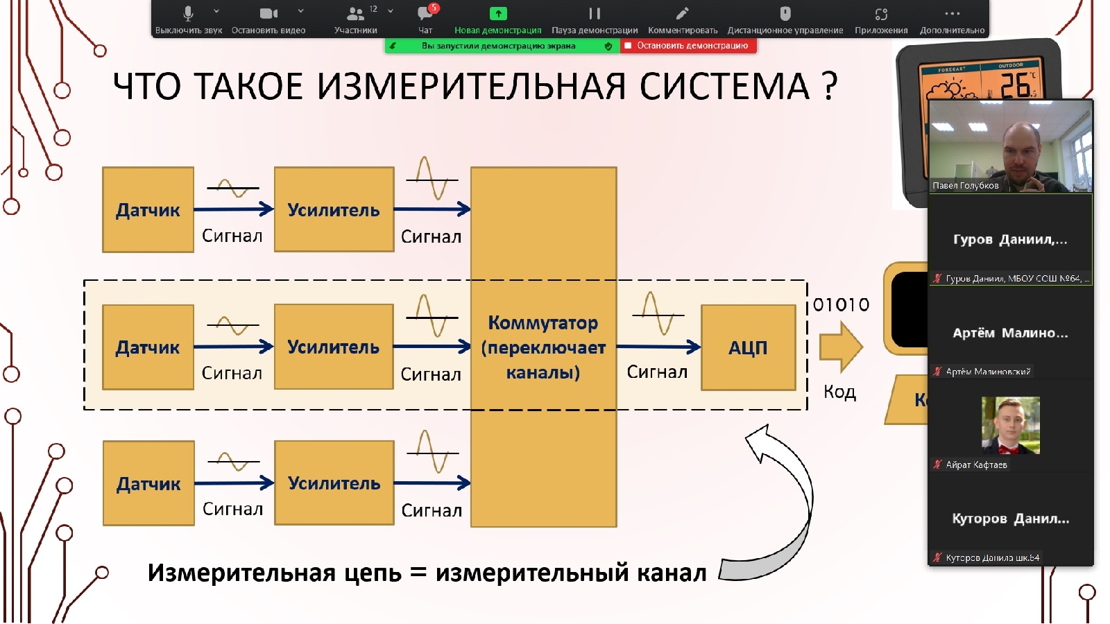 С 14 по 21 февраля 2022 г в рамках Политехнической школы ПГУ состоялись занятия на тему «Информационные технологии и измерительные системы». Слушатели – ученики старших классов МБОУ СОШ № 52, 64, 37 г. Пензы. В проведении занятий приняли участие Е.А. Печерская – д.т.н., зав. каф. «Информационно-измерительная техника и метрология» (ИИТиМ), П.Е. Голубков – инженер – исследователь кафедры ИИТиМ, М.И. Сафронов - инженер – исследователь кафедры ИИТиМ, зам. декана ФИТЭ по научной работе.