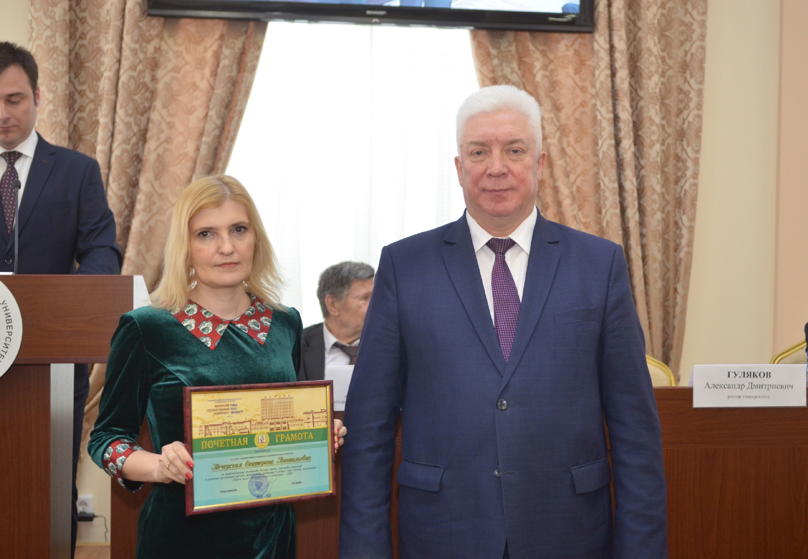 Почетными грамотами награждены Екатерина Печерская – д.т.н., заведующий кафедрой «Информационно-измерительная техника и метрология»; Владимир Антипенко – аспирант 4 года обучения, инженер – исследователь кафедры «Информационно-измерительная техника и метрология» за существенный вклад в организацию серии научных мероприятий «Неделя науки Политехнического института – 2023».